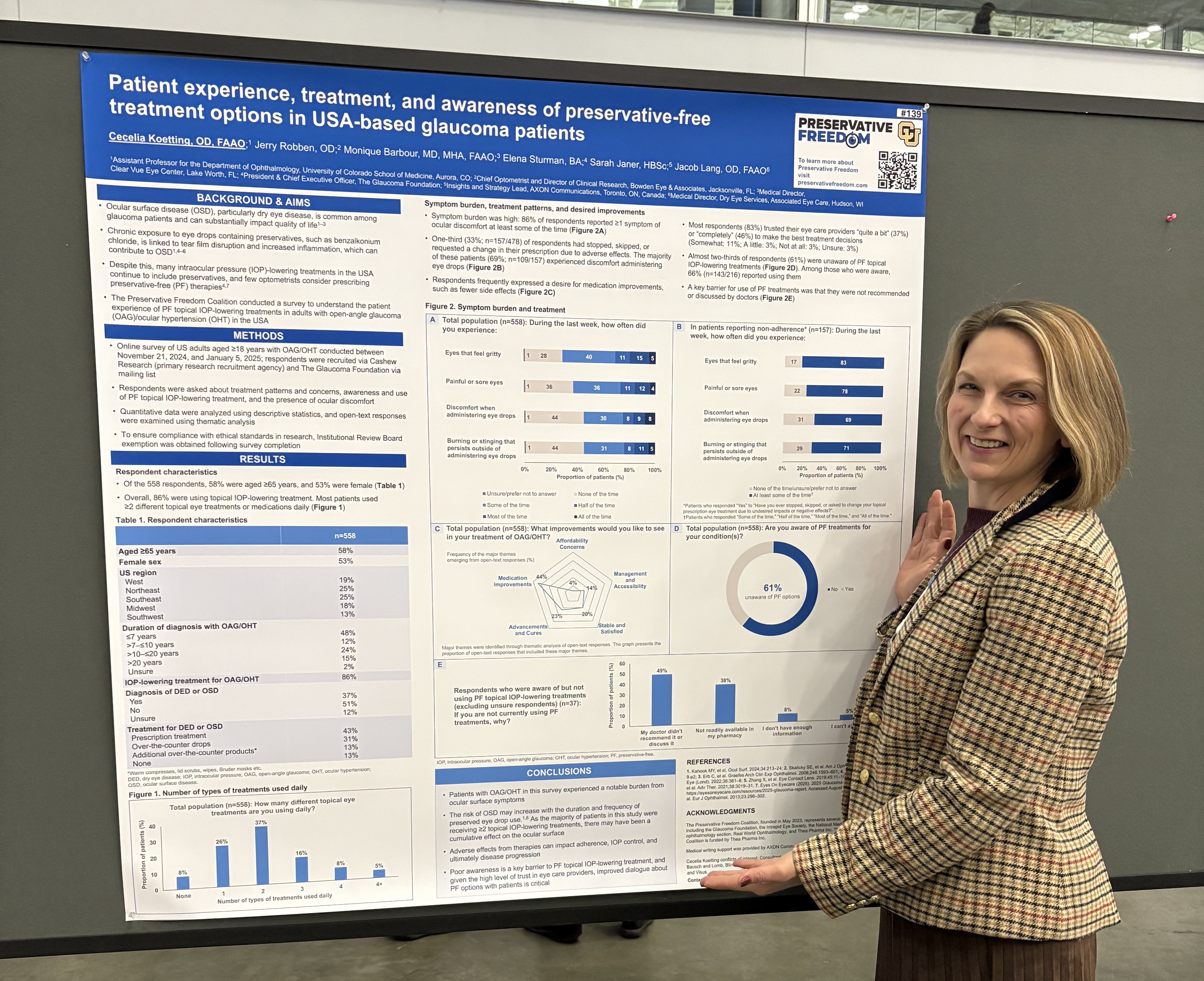 Dr. Koetting presented the poster at the Congress, connecting with media and fellow eye care professionals to highlight the impact of the survey findings and what they mean for glaucoma care.